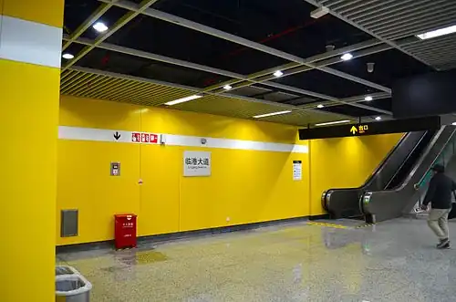 Lingang Avenue (simplified Chinese: 临港大道; traditional Chinese: 臨港大道; pinyin: Língǎng Dàdào) is a station on Line 16 of the Shanghai Metro in Shanghai, China. The station is located in the center of Nanhui New City. From here, the Universities Shanghai Maritime University and Shanghai Ocean University can be reached by bus. It opened on 29 December 2013 as part of the first section of Line 16 from Luoshan Road to Dishui Lake.[1]