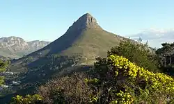 Lion's Head is a mountain in Cape Town, South Africa, between Table Mountain and Signal Hill. Lion's Head peaks at 669 metres (2,195 ft) above sea level. The peak forms part of a dramatic backdrop to the city of Cape Town and is part of the Table Mountain National Park.