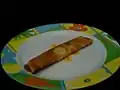 Biscuit roll, dulce de leche, chocolate | Chocolate covered biscuit rolls filled with dulce de leche, with a shape that resembles a cigar. |