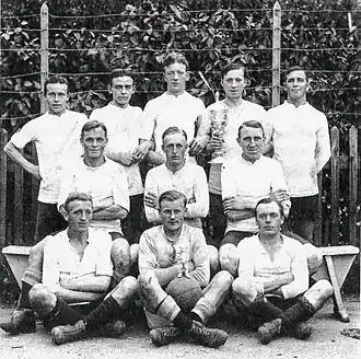 The Boldklubben 1908 line-up in the 1917 season displaying a trophy from a ABU league tournament.[1]