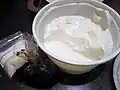 Dein gyin ဒိန်ချဉ် Burmese style yoghurt served with jaggery syrup.