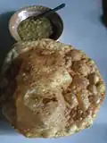 Chapati ချပါတီ Indian Fried chapati, crispy and blistered, with boiled peas (pè-byohk), a popular breakfast next to nan bya.