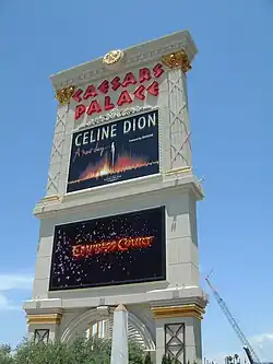 Promotional billboards of Dion's residency shows at Caesars Palace in Las Vegas.