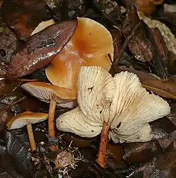 - Gymnopus aurantiipes (Corner) A.W. Wilson, Desjardin & E. Horak (2004)