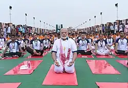 In Lucknow, the Indian prime minister Narendra Modi participated in the event and practiced yoga along with 51,000 participants.[13][14] Many business leaders in India also took part in the event.[15][16] In New York, thousands of participants gathered to practice yoga on Times Square. Japan created a Parliamentary League for the promotion of yoga just prior to the event, in April 2017.[17] In China, the largest gathering was 10,000 participants in the city of Wuxi.[18] In Athens, the event took place on 25 June as part of the Greek Open Yoga Day[19] and in Kyiv, the event happened on 18 June and gathered a few hundred participants.[20] In Ireland, participants met in the round room of the City Hall in Dublin.[21] The theme for 2017 was "Yoga for Health".