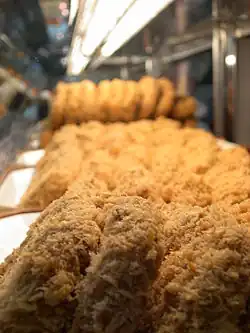• Tonkatsu, Menchi katsu, chicken katsu, beef katsu, kujira katsu - breaded and deep-fried pork, minced meat patties, chicken, beef, and whale, respectively.