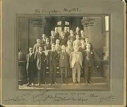 The Pithotomy club was a medical student club formed by the first senior class in 1897. The original intention of the club was to foster a sense of brotherhood among the students and also to encourage informal interactions between the faculty and students. It started when William G. MacCallum and Joseph L. Nichols had rented a house at 1200 Guilford Avenue and as a housewarming celebration invited Drs. William H. Welch and William Osler, other faculty members, and friends to the house and entertained them with a keg of beer. These gatherings were repeated several times and finally, several classmates joined MacCallum and Nichols to organize what became known as the Pithotomy Club.[10] The word "Pithotomy" was invented by MacCallum when he combined the Greek words pithos, meaning vessel, and otomos, meaning to open. Together the words mean, to Pithotomists at least, "to tap a keg."[11] The club's constitution, written in 1897, states its mission in this manner: "the promotion of vice among the virtuous, virtue among the vicious, and good fellowship among all."[4]