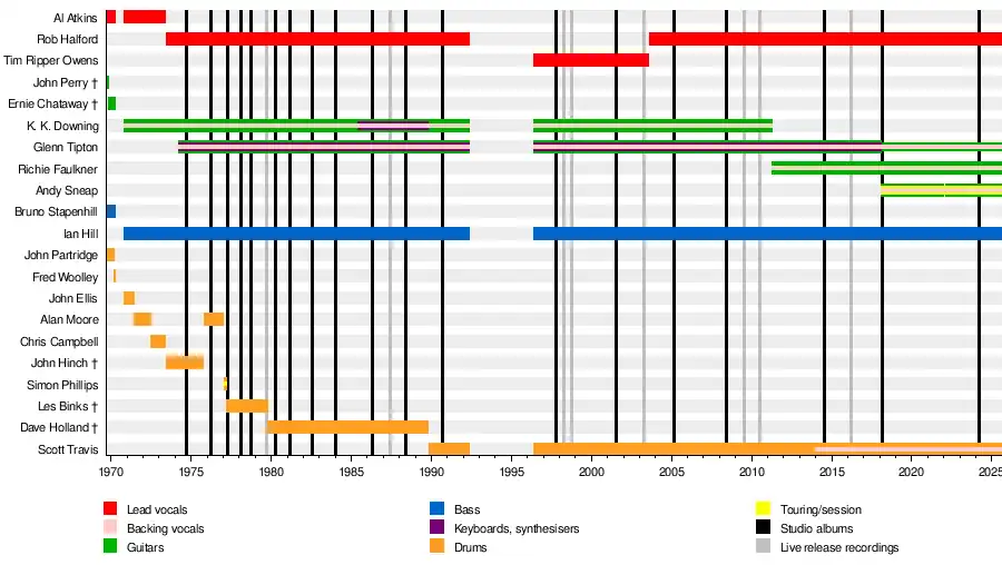 1. ^ a b Rivadavia, Eduardo (6 December 2014). "Judas Priest Lineup Changes: A Complete Guide". Ultimate Classic Rock. Retrieved 25 December 2015.
