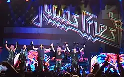 In November 1989, Scott Travis replaced Holland and debuted on Painkiller.[10] The album was the last at the time to feature Halford, who later left in May 1992.[11] The group went on hiatus for a few years, before enlisting Tim "Ripper" Owens – frontman of a Judas Priest tribute act called British Steel – as Halford's replacement in May 1996.[12] Owens recorded two albums with the band – 1997's Jugulator and 2001's Demolition – before Halford rejoined in July 2003.[13] Angel of Retribution and Nostradamus followed, before Downing left and was replaced by Richie Faulkner in April 2011.[14] The guitarist's departure was reportedly due to differences with other band members and management.[4] In February 2018, Tipton ceased touring full-time with the band after being diagnosed with Parkinson's disease, with Andy Sneap taking his place on tour,[15] and Tipton making occasional appearances on subsequent tours.[16]