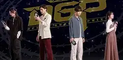 The Desire Grand Prix (デザイアグランプリ, Dezaia Guran Puri), abbreviated as DGP, is a cult-like totalitarian organization which governs the future, where Earth was ruined and abandoned and the entire human race exists as data beings, that hosts a survival reality show of the same name that can be viewed across time and space.[49][19] Originally, the competitors only fought for fame and glory with no casualties, their only prize being a gold coin and recognition as the strongest warriors of their time. This changed when the organization decided to increase the stakes by recruiting players to become Kamen Riders and defeat the mysterious "Jyamato" in a series of tournaments in exchange for granting the winner's wish. Once a chosen participant joins, they are bound by the game's rules, such as protecting civilians from Jyamato, and are forced to keep playing until they are either killed, removed from reality, disqualified, or find a replacement and returned to their regular lives with no memory of the DGP nor motivation towards fulfilling their wish.[2][23][39][3]