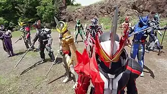 70. ^ a b c d e "Ten Swordsmen With the World on the Line.". Kamen Rider Saber. Episode 45. August 8, 2021. TV Asahi.