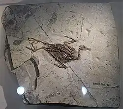 - ^ Lianhai Hou; LuisM. Chiappe; Fucheng Zhang; Cheng-Ming Chuong (2004). "New Early Cretaceous fossil from China documents a novel trophic specialization for Mesozoic birds". Naturwissenschaften. 91 (1): 22–25. Bibcode:2004NW.....91...22H. doi:10.1007/s00114-003-0489-1. PMC 4382005. PMID 14740099.