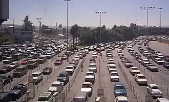 Traffic approaching the San Ysidro, San Diego border inspection station