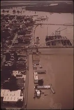 The Mississippi Flood of 1973 occurred between March and May 1973 on the lower Mississippi River.[7] The flood resulted in the largest volume of water to flow down the Mississippi since the Great Mississippi Flood of 1927. Both the Bonnet Carre Spillway and the Morganza Spillway were employed. The Bonnet Carre was fully opened between April 7 and June 14 for a record 75 days. The 1973 flood was the first time the Morganza Spillway was opened: from April 19 through June 13.