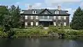 The Allegany State Park Administration Building as seen from the Red House Picnic Area across Red House Lake.