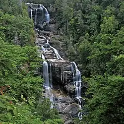 Follows Harshaw Road (SR 1558), Brasstown Road (SR 1134), Old US 64 (SR 1100), Settawig Road (SR 1135) and US 64. Named for the 200 waterfalls that surround the route, it passes by notable sites including the Cullasaja Gorge, Highlands, Cashiers and Lake Toxaway.