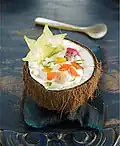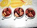 Kompott Whole or pieces of fruit in sugar syrup. Whole fruits are cooked in water with sugar and spices