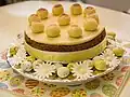 Marsipankake Sponge cake filled with jam or cream, topped with marzipan