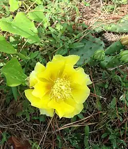 Opuntia humifusa (Raf.) Raf. eastern prickly pear   humid regions of Eastern United States and northerly regions into Canada, Mexico (Tamaulipas, San Luis Potosí) n = 22, 2n=44