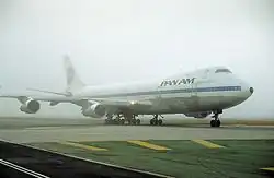 N738PA, the aircraft involved in the landing at Karachi - Flight 73, a Boeing 747-121 (N738PA), ran off the runway while landing at Karachi International Airport due to loss of control after the pilot selected forward thrust on engine number four by mistake; all 243 on board survived.[46]