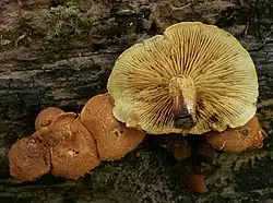 - ^ Smith AH, Brodie HJ (1935). "Cultural characters and pairing reactions of monosporous mycelia and development of the fruit body of Pholiota (Flammula) polychroa". Botanical Gazette. 96 (3): 533–546. doi:10.1086/334499. S2CID 83863682.