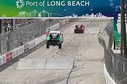 True to the series name, the trucks originally raced mainly in American football stadiums on special dirt courses in emulation of the Mickey Thompson Entertainment Group stadium truck championship; four of the ten tracks that hosted a race during the inaugural season in 2013 were National Football League venues.[1] From 2014 onward, the series began to shift toward road courses and street circuits as a support class for the IndyCar Series, a decision that founder Robby Gordon explained in 2017 helped bring the off-road-centric discipline to a "completely different fan audience."[2] The track layout for these support races follow the IndyCar configuration but add aluminum ramps that enable the trucks to go airborne.[3] SST has also supported other championships and events such as NASCAR and the Race of Champions.[4] The Boost Mobile Super Trucks, SST's standalone Australian series, supported the Supercars Championship. SST began racing in Oceania in 2015. Much of the trucks' Australian competition was under Motorsport Australia sanction, though the series has also supported the Australian Auto Sport Alliance and Ultimate Sprintcar Championship.[5][6]