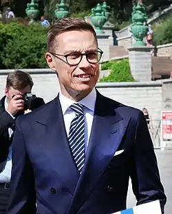- Alexander Stubb – member of European Parliament, 2004 to 2008; member of parliament, 2011 to 2017; Minister for Foreign Affairs, 2008 to 2011; Minister for Foreign Trade and Development, 2011 to 2014; leader of the National Coalition Party, 2014 to 2016; Minister of Finance, 2015 to 2016; 43rd Prime Minister of Finland, 2014 to 2015; and 13th President of Finland, since 2024 (1968– )