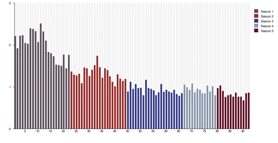 For the fifth season, see "The Originals: Season Five Ratings". TV Series Finale. August 2, 2018. Retrieved November 20, 2019.