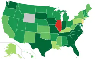 | Illinois | A- | A− | A− | A− | A− | A- | A− | A− | A− | A | A+ | A+ | A+ | AA | AA | AA | AA | AA | AA | AA | AA |