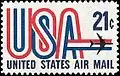 Domestic U.S. Air Mail was established as a new class of mail service by the United States Post Office Department (POD) on May 15, 1918, with the inauguration of the Washington–Philadelphia–New York route. Special postage stamps were issued for use with this service.[1] Domestic air mail became obsolete in 1975, and international air mail[2] in 1995, when the USPS began transporting First Class mail by air on a routine basis.[3][4] All post-1977 United States stamp images are copyright of USPS.[5]