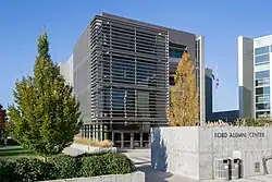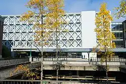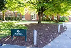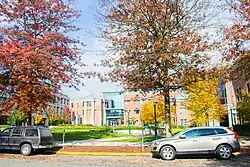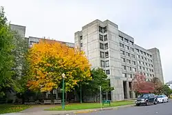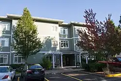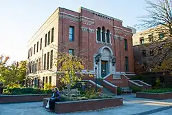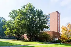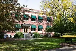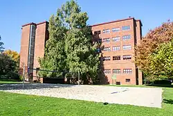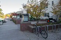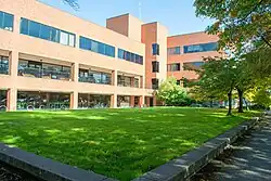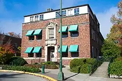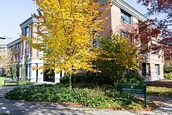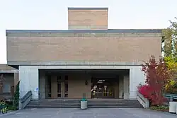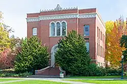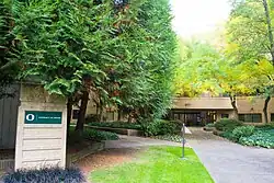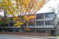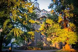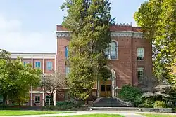 University of Oregon real estate includes buildings in a variety of architectural styles and eras. Many buildings on the main campus were designed by Ellis F. Lawrence, who joined the university in 1914 as campus planner, but by 1915 he had founded the School of Architecture and had become chief architect of the university. Lawrence also held a commission to design all buildings on campus as long as he remained in charge of the School of Architecture. This commission was a source of extra income for Lawrence, and he designed buildings until his death in 1946.[1] Some of the Lawrence buildings are listed on the National Register of Historic Places. Others are not themselves listed but are included in NRHP site surveys. The Memorial Quadrangle, for example, contains buildings listed as contributing resources in the site survey for the Knight Library.[2] These buildings are Condon Hall, Chapman Hall, and the Jordan Schnitzer Museum of Art, although the museum is also separately listed.[3] The Women's Memorial Quadrangle is listed on the NRHP, and it contains three more Lawrence buildings which are contributing resources, Gerlinger Hall, Hendricks Hall, and Susan Campbell Hall.[4]