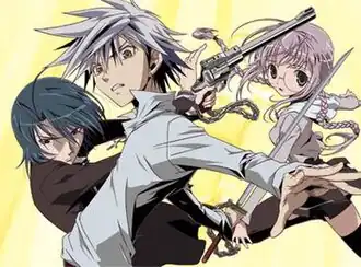 Shūji Tsugumi (鶫 修司, Tsugumi Shūji) is a tall, high school freshman, who uses a machine gun as his main weapon. He has a laid-back personality and finds Shito's enthusiasm for collecting figures sickening. He claims to have good luck, proven when he finds a Rare Betty in a snack box and wins the lottery. He seems to be in love with Toko as he seems to be highly concerned for her welfare and searches for her in Hong Kong. Also, during the time Zen becomes possessed, with Toko going into hysterics, Shuji tries to calm her down and claims that he would stay by her side. He meets up with Chika and Shito in Hong Kong, where they find themselves caught up in a conflict against Touhou and the Mafia Xu Fu. He helps them fight Touhou and the Xu Fu, and during the fight his ties with the contract are broken by a member of ARCC. While he had been left alone in Japan, he formed a double contract with Bekkō, preventing him and the other A-Loan members from dying. He doesn't get along with Shito well, but in volume 10 he and Chika seem to be friendly towards each other, although this may just be because they are both working together to survive, not actually joining sides.