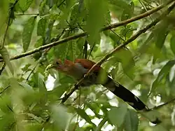 The family Cuculidae includes cuckoos, roadrunners, and anis. These birds are of variable size with slender bodies, long tails, and strong legs.
