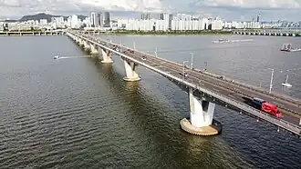 12 | Banpo Bridge | 반포대교 | Longest bridge fountain in the world | 1,495 m (4,905 ft) | Box girder Steel 2 levels |