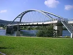 39. ^ "Die Stahlbogenbrücke au als Wahrzeichen der neuen Umfahrung Lanquart" [The steel arch bridge as a landmark of the new Lanquart bypass] (PDF). [hhtps://www.gr.ch Tiefbauamt Graubünden Info] (in German). Vol. 4. February 1994. Retrieved 28 November 2022.