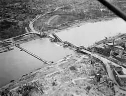 • *At Rhenen, across Nederrijn - former double tracked rail bridge, destroyed in World War II.