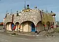 Hundertwasser started to work as an architect at the age of 55 already having a reputation as a painter. According to the views of the artist, every person is entitled to decorate his house. Hundertwasser's architecture differs from functionalism and rationalism typical of the 20th century, by his use of bright colors, decorations, distorted lines and the desire to be in harmony with nature. Hundertwasser believed that only a few buildings are "healthy." He made numerous restructuring and renewal of residential and functional buildings and had a reputation as "the doctor of architecture" because he treated buildings by decorating them in order to diminish the visual pollution of the environment. The largest architectural project of Friedensreich Hundertwasser is the hotel complex Rogner Bad Blumau in Austria, completed in 1997.