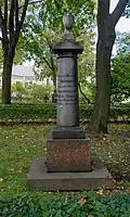 Military officer, Major General, friend of Alexander Pushkin. Originally buried in the Vyborg Roman Catholic cemetery, transferred to the Tikhvin in 1936. Monument is not the original.