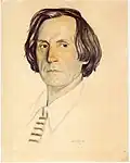 During the early Soviet period a number of monuments were stolen or destroyed. The cemetery was officially closed for burials in 1927, though they continued until 1932, and it was decided to turn it into a necropolis museum, displaying historically and artistically significant graves.[2][1] Alongside this was concept of gathering together the graves of the friends and contemporaries of Alexander Pushkin for the 1937 centenary commemorations of the poet's death. The architectural and planning department of Lensovet, the city administration, was tasked with creating a memorial park project.[2] Plans were drawn up by architects E.N. Sandler and E.K. Reimers, with further input from the city's chief architect L.A. Ilyin.[2] The Funeral Affair Trust was established to run the necropolis museum, including removing abandoned gravestones for sale as building materials.[4] The reconstruction radically altered the nature and appearance of the Tikhvin cemetery. With the intention being to create an "artists' necropolis", graves of those from other sections of society were removed. Fewer than a hundred of the original monuments were preserved.[2] Meanwhile, the remains of prominent artists, sculptors, composers and musicians were reburied in the cemetery. Among them were personal friends of Pushkin, including Konstantin Danzas, Anton Delvig, and Fyodor Matyushkin.[2]