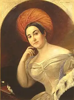 The cemetery opened in 1823 to relieve overcrowding in the monastery's Lazarevskoe Cemetery. Initially called the "New Lazarevsky" (Russian: Ново-Лазаревским), it quickly expanded to cover a large area. Its cemetery church was consecrated in 1871 in the name of the icon of the Tikhvin Mother of God, from which the cemetery took its name.[1][2][3] Burials initially took place in the eastern part of the cemetery, and in 1826 the writer Nikolay Karamzin was buried in the cemetery, followed in 1833 by Nikolay Gnedich, a contemporary of Alexander Pushkin's.[4][5][6] From then on a number of figures associated with the arts' world were buried there, including Pushkin's contemporaries Ivan Krylov, Pyotr Vyazemsky, Pyotr Pletnyov, and Alexey Olenin.[4][7] In 1844 another contemporary poet of Pushkin's, Yevgeny Baratynsky, was buried in the cemetery.[8]
