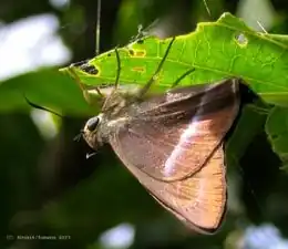 - Common banded awl, Hasora chromus (Cramer, 1780)[7][22][24][25][26]