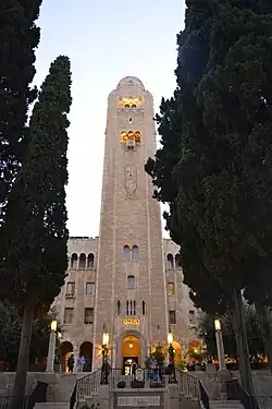 Israel has one carillon, located at the Jerusalem International YMCA. It was installed and dedicated along with the rest of the newly constructed building in 1933. Gillett & Johnston cast the original 35 bells, the heaviest of which weighs 1,500 kilograms (3,300 lb). In 2018, Royal Eijsbouts cast a 36th bell, weighing 800 kilograms (1,800 lb), for the instrument. It is one of the only carillons in the Middle East.[8][9]