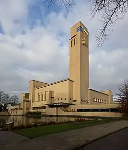 Carillons are found throughout the British Isles as a result of the First World War. During the German occupation of Belgium, many of the country's carillons were silenced or destroyed. This news circulated among the Allied Powers, who saw it as "the brutal annihilation of a unique democratic music instrument".[21][22] The destruction was romanticized in poetry and music, particularly in England. Poets – often exaggerating reality – wrote that the Belgian carillons were in mourning and awaited to ring out on the day of the country's liberation. Edward Elgar composed a work for orchestra which includes motifs of bells and a spoken text anticipating the victory of the Belgian people.[23] He later even composed a work specifically for the carillon.[24] Following the war, countries in the Anglosphere built their own carillons to memorialise the lives lost and to promote world peace,[22] including two in England.[25]