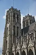 The tower St. Rumbold's Cathedral in Mechelen contains two large, 49-bell carillons