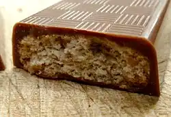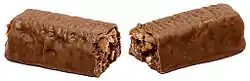[It should be remembered that Ovaltine, this Swiss product made from malt and popular with mountaineers, was first a powder to be mixed with milk to obtain a chocolate drink, before being available in various forms, including the famous bar with energetic virtues.] - ^ Amberleigh Jack (October 16, 2022). "Iconic Peanut Slab, long a Kiwi favourite, recognised with lifetime award". Stuff. Retrieved November 6, 2023.