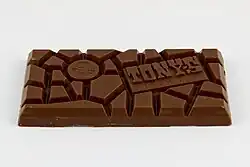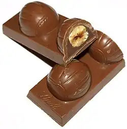 This is a list of chocolate bar brands, in alphabetical order, including discontinued brands. A chocolate bar, also known as a candy bar in American English, is a confection in an oblong or rectangular form containing chocolate, dark chocolate, or white chocolate, which may also contain layerings or mixtures that include nuts, fruit, caramel, nougat, and wafers.