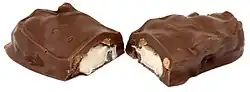 | Clark Bar | United States | Boyer | Honeycombed peanut butter filling coated with chocolate | ||