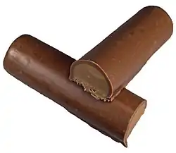 | Curly Wurly | United Kingdom, Ireland, New Zealand, Australia, the Netherlands | Cadbury | Chocolate-covered caramel braid |