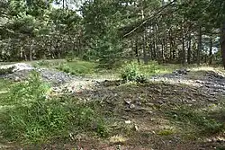 The ruins of the small church or chapel traditionally called the Church of Saint Olaf are quite small, the remains of the wall not reaching higher than c. 0.6 metres (2.0 ft). Adjacent to the church ruins lie the remains of a cemetery. Today the ruins lie within a nature reserve.[13][14] | |