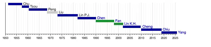 2 June 1957 | 2 June 1960 | Kuomintang | 3 | |